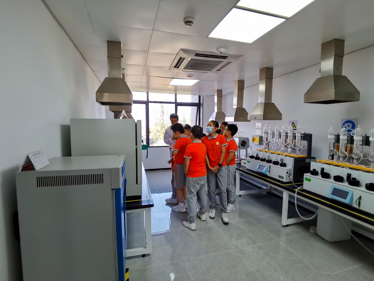 孩子們來到廠區的第一站是一節安全教育課。作為一家危廢處置企業,安全既是企業的立身之本,更是得以發展的成事之基。安環部于主管以自身的經歷為實例,生動地說明了聽從指揮、遵守安全規則的重要性,并教會孩子們如何正確佩戴安全帽、合理地保護好自己。