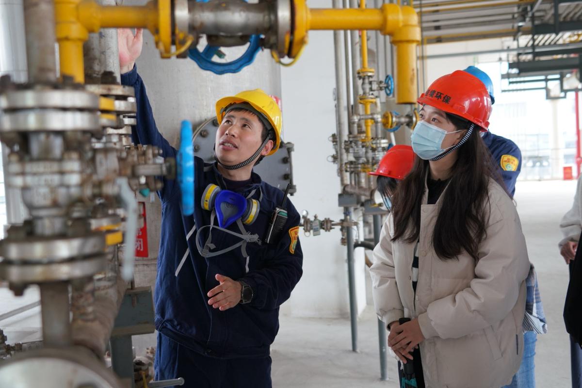 短暫的午休后,工作人員帶領(lǐng)同學(xué)們進(jìn)入生產(chǎn)現(xiàn)場,通過近距離觀察生產(chǎn)設(shè)備、了解作業(yè)流程,使同學(xué)們對工業(yè)危廢資源化利用和無害化處置的工藝流程有了更清晰的認(rèn)識。